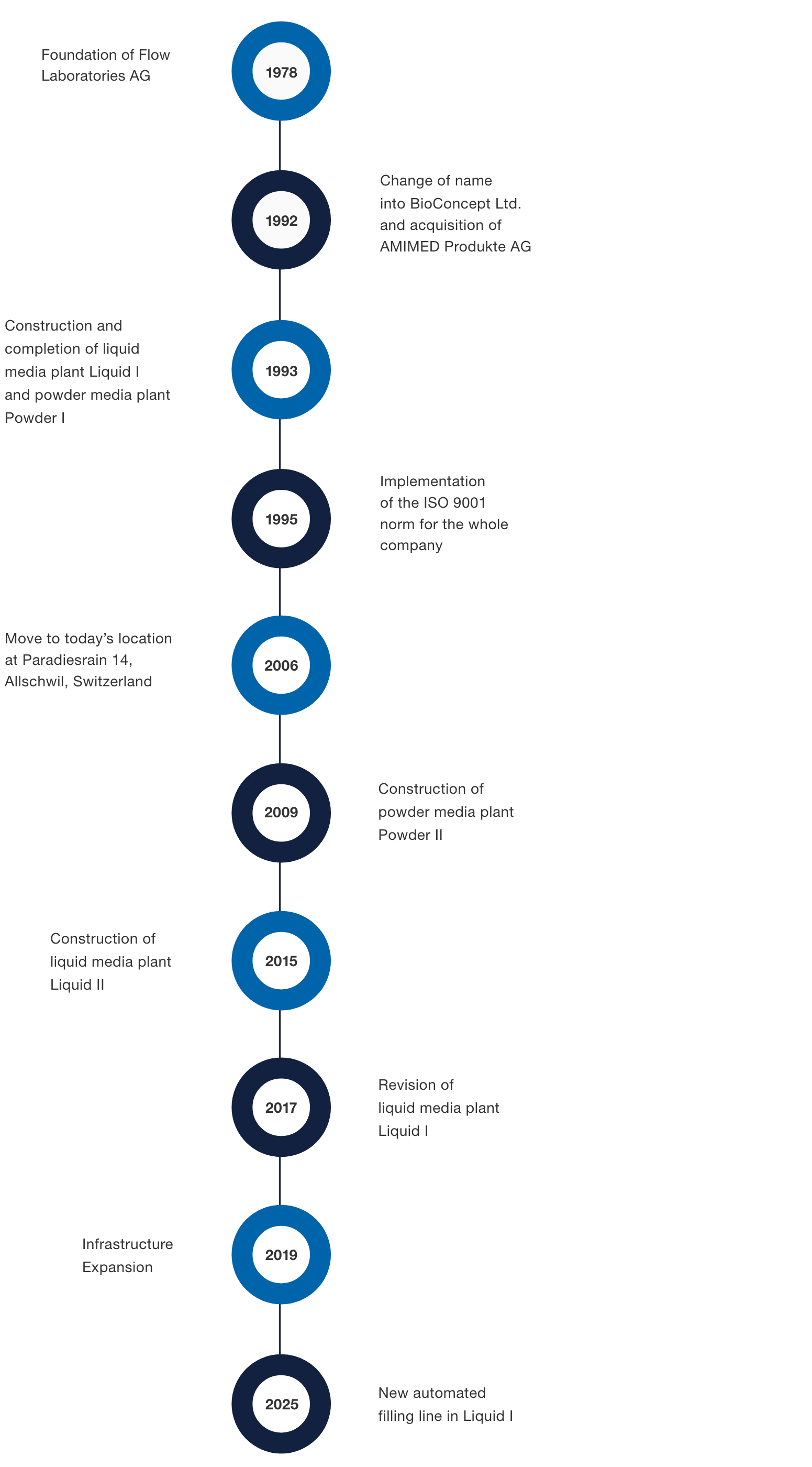 We have been producing within a certified quality management system since 1995 and our new cell culture and sterile liquid production plant has vastly improved our already hight standards. BioConcept Ltd.’s expansion into the tissue culture market in 1992 allowed us to meet the needs of the sophisticated and evolving pharmaceutical and bio-pharmaceutical markets.
